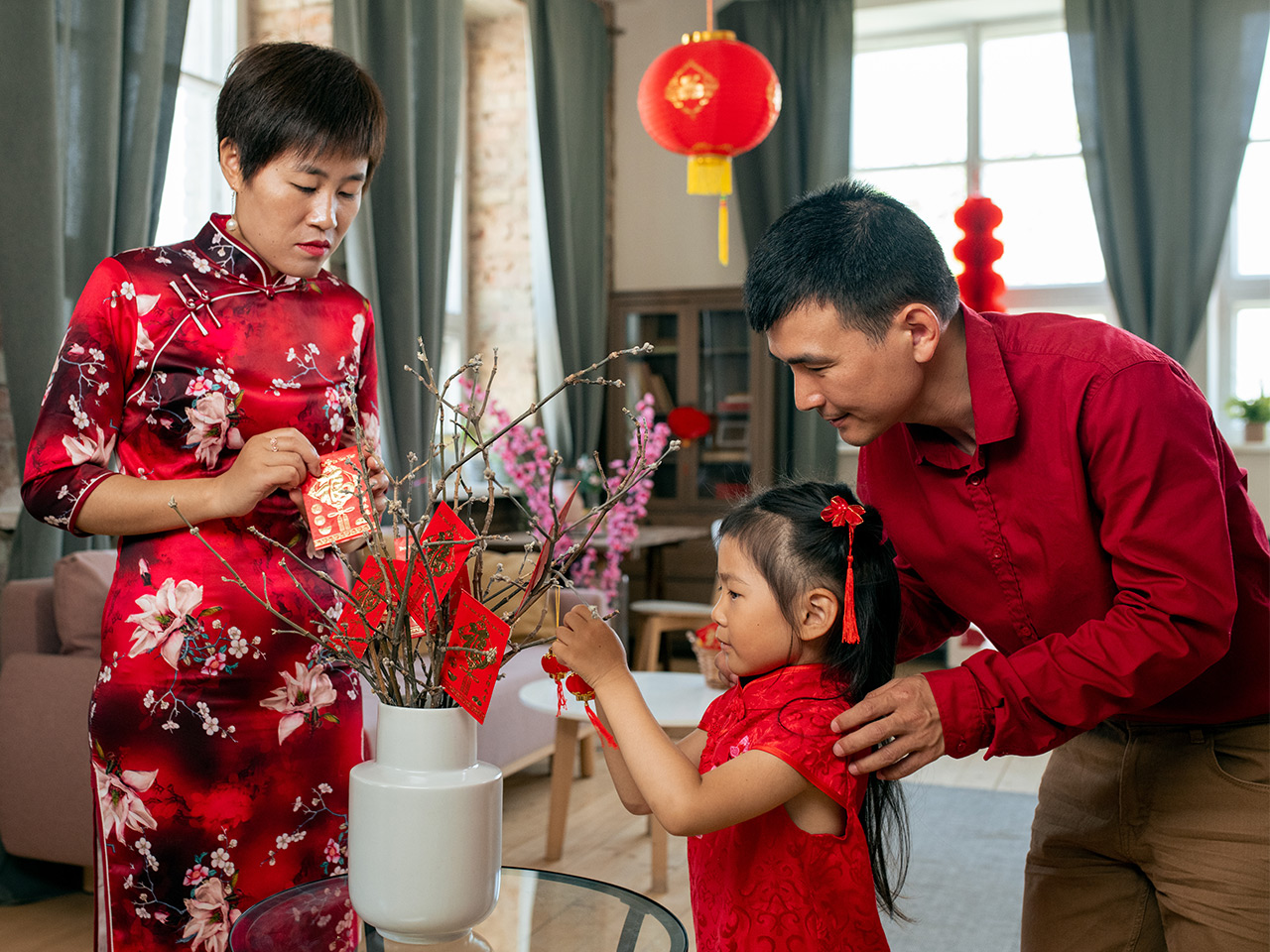 Bagi mengoptimumkan Feng Syui yang baik, rumah perlulah dihiasi dengan tanglung dan sepanduk berwarna merah yang mengandungi kaligrafi Cina bagi menandakan kemakmuran tahun baru.